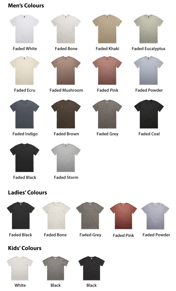 | Men's Colours | Faded Black, Faded Bone, Faded Brown, Faded Coal, Faded Ecru, Faded Eucalyptus, Faded Grey, Faded Indigo, Faded Khaki, Faded Mushroom, Faded Pink, Faded Powder, Faded Storm, Faded White |