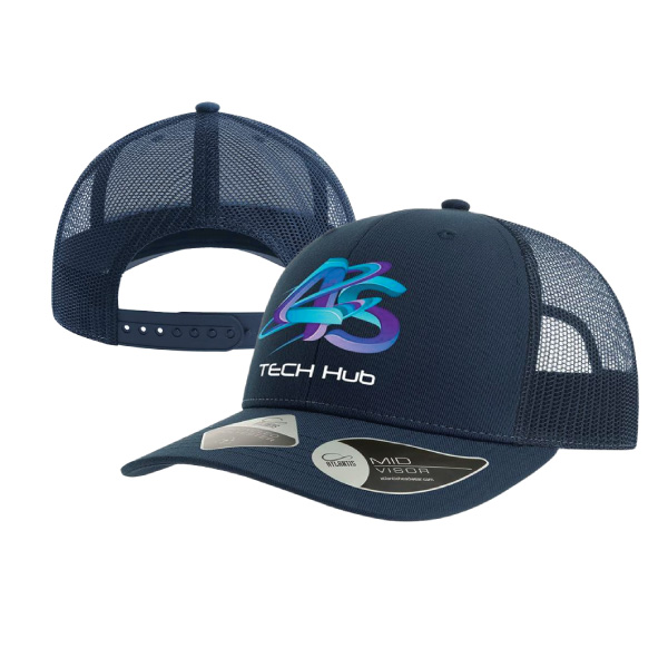 A classic 6-panel structured trucker cap made from recycled polyester twill. Features ventilated recycled mesh for breathability and a sustainable snapback closure. Perfect for summer or travel.