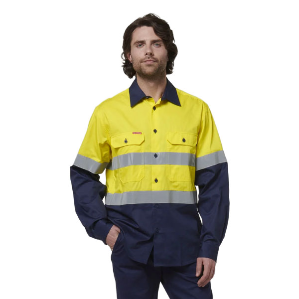 Stay visible with our Core 2 Tone Taped Vented Long Sleeve. Designed with high-vis material and ReflecTec tape, Hard Yakka has got you covered on the job – no matter the time of day.