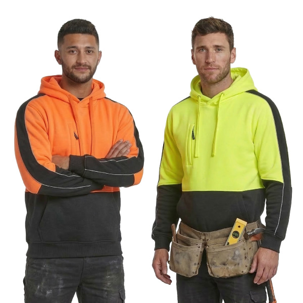 Stay visible and comfortable with the Syzmik Unisex Hi Vis Pullover Hoodie. Made from 320 gsm low pill fleece, this hoodie offers warmth and durability. It features a microfiber lined hood, heavy-duty zips, and reflective piping for added safety. With a mobile phone chest pocket and two hand pockets, it’s designed for convenience.