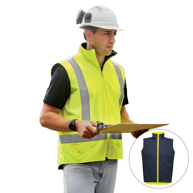 This vest can be zipped into the Syzmik Hi Vis Basic 4 in 1 Waterproof Jacket.