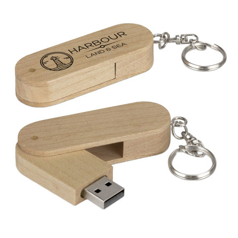 Swivel flash drive which is manufactured from natural Maple Wood. It has 8GB of memory with a USB 2.0 interface and data uploading is available on request. Wood is a natural material that produces unavoidable variances in the grain pattern, colour and branding.