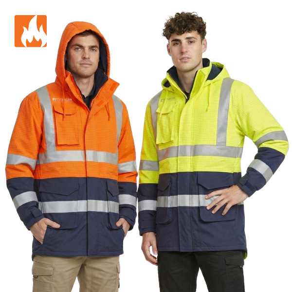 This Syzmik Jacket is made from a waterproof polyester oxford, carbon fibre outer with an FR ARC rated finish. It is fully seam-sealed and has a waterproof rating of 5,000mm. The jacket also features a heat-resistant FR Zip and a warm Modacylic/Cotton FR lining. It has two covered waist pockets with FR closure.