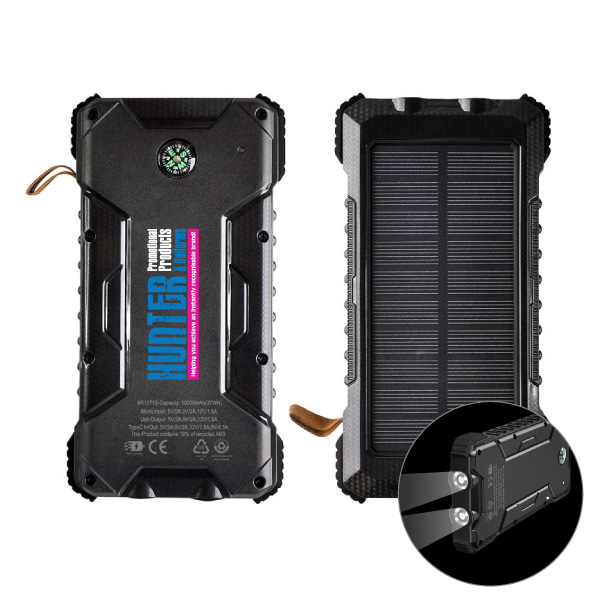 The Outback Pro is a rugged 10,000 mAh solar power bank delivering 22.5 W fast charging in a splash-proof case. Made from 28% recycled ABS, it features an A-grade lithium-polymer battery, Type-C and Micro USB inputs, and Type-C (PD20W) and dual USB outputs for charging two devices at once. Designed for outdoor use, it includes a magnetic compass, dual LED torch, and capacity indicator, with built-in protection to prevent overcharging and short circuits. Supplied with a Type-C cable, user manual, and recycled packaging.