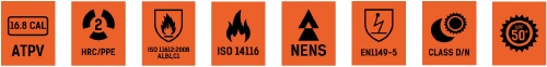 | Fabric | 100% 300D Oxford Polyester with Carbon Fibre Lining – Modacrylic, Cotton |