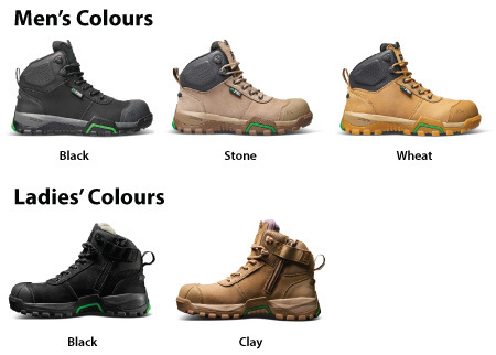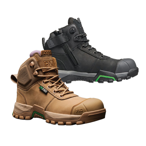 FXD WB.2 NITROLITE™ work boots in black are a mid height safety boot style with debossed microfibre collar, medial zip entry, lightweight composite safety toe and lightweight.